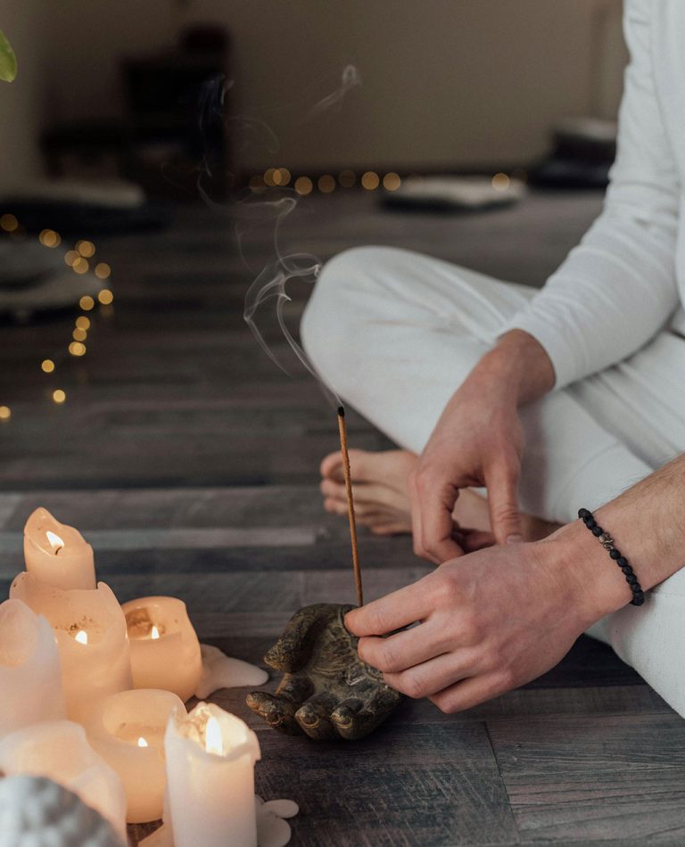 It’s a good idea to wear something clean, light and comfortable for meditation. If you like you can even have a special set of clothing you only use for meditation. This gives a sense of ritual and helps to reinforce the habit.